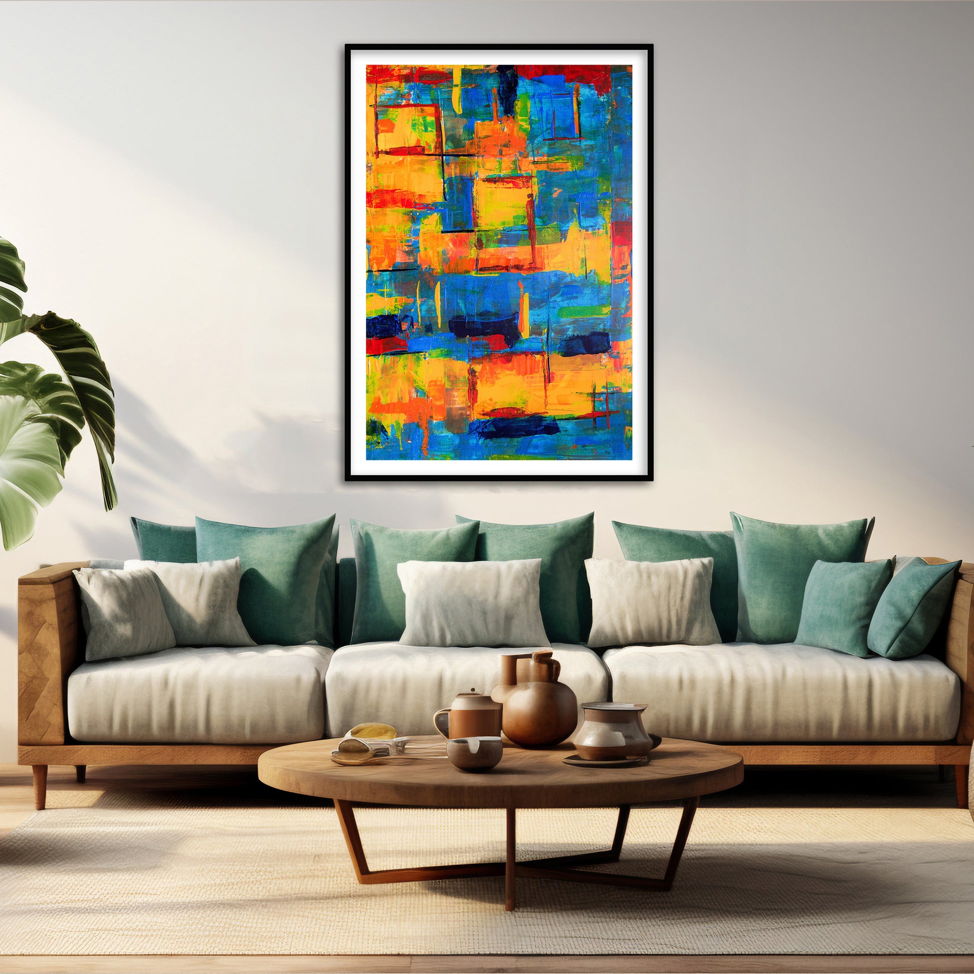 Add a splash of color to your space with this vibrant abstract canvas art print by Steve Jonson. Printed on premium canvas cloth, this artwork captures the richness and detail of the original painting, ensuring a high-quality finish that lasts for years. Whether displayed in a modern living room, office, or gallery wall, this captivating piece brings warmth, sophistication, and artistic flair to any setting.