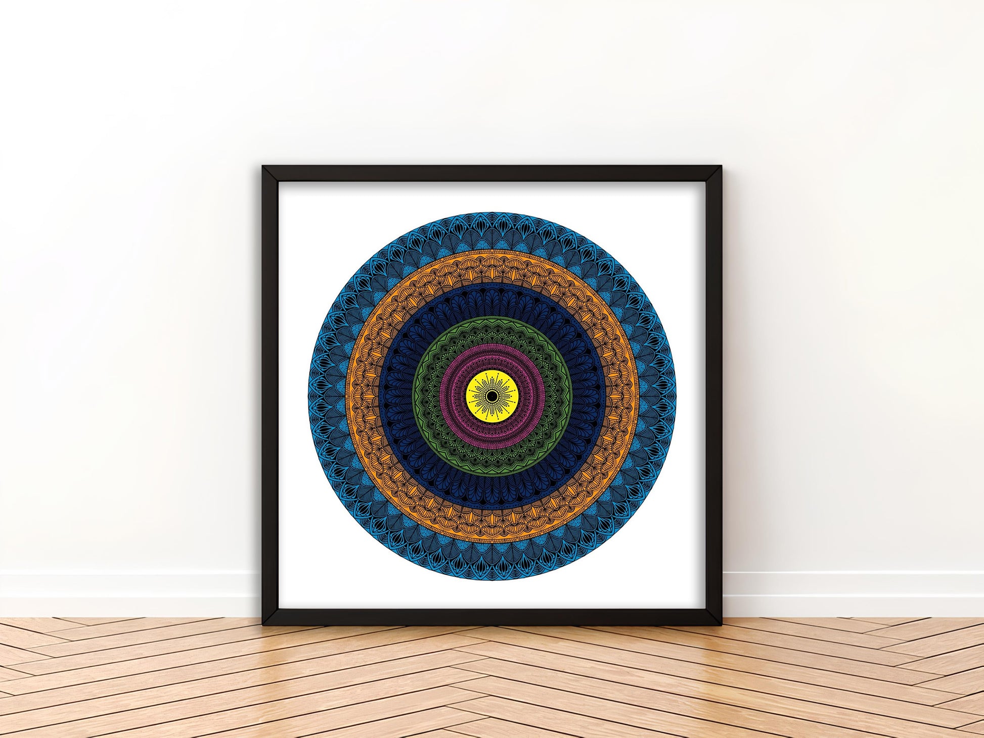 Let the "Oceanic Depth Mandala" transform your home décor. Its calming colors and intricate details evoke the serenity of the ocean depths, inviting you to embrace a sense of peace and wonder. This captivating piece makes a thoughtful gift for art lovers and anyone seeking to create a more tranquil and inspiring living space.
