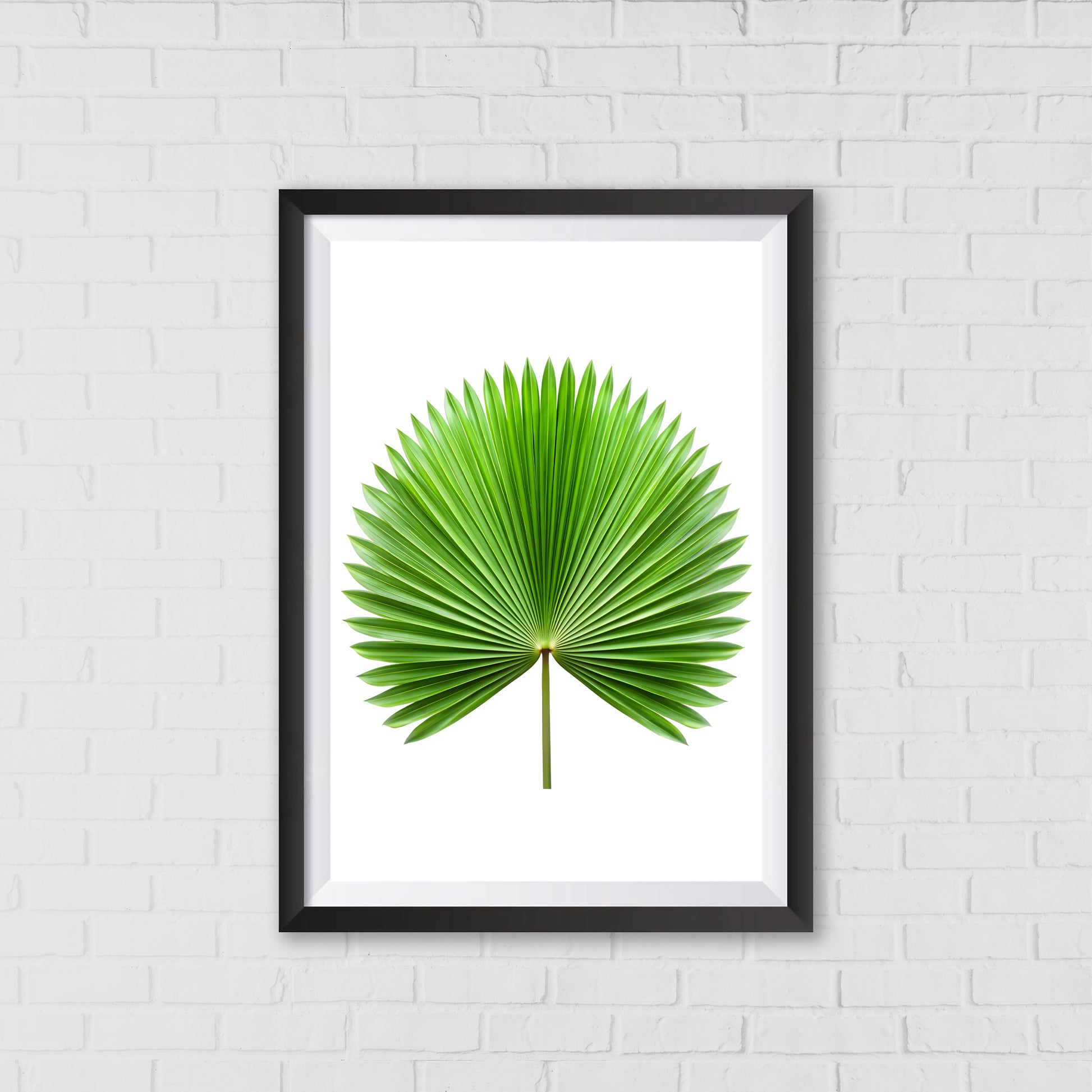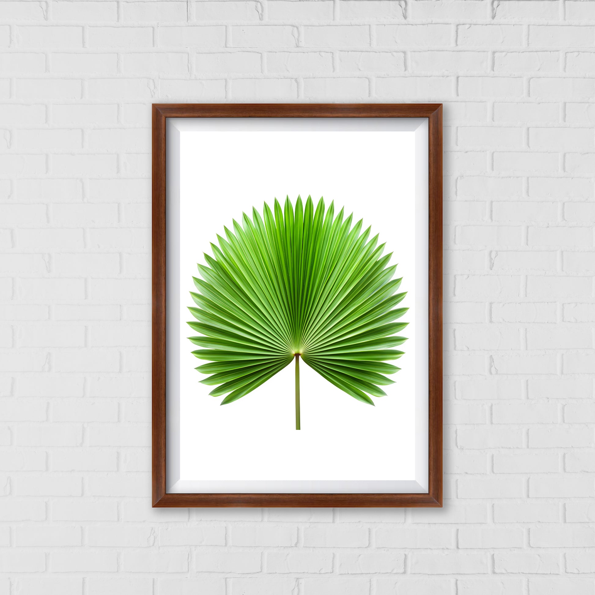 This striking botanical print showcases the captivating beauty of a Fan Palm leaf in exquisite detail. Its vibrant green hues and unique fan-like structure create a sense of tropical elegance, bringing the lushness of nature into your home. The intricate veins and delicate textures of the leaf are captured with stunning realism, making this artwork a captivating focal point for any space.