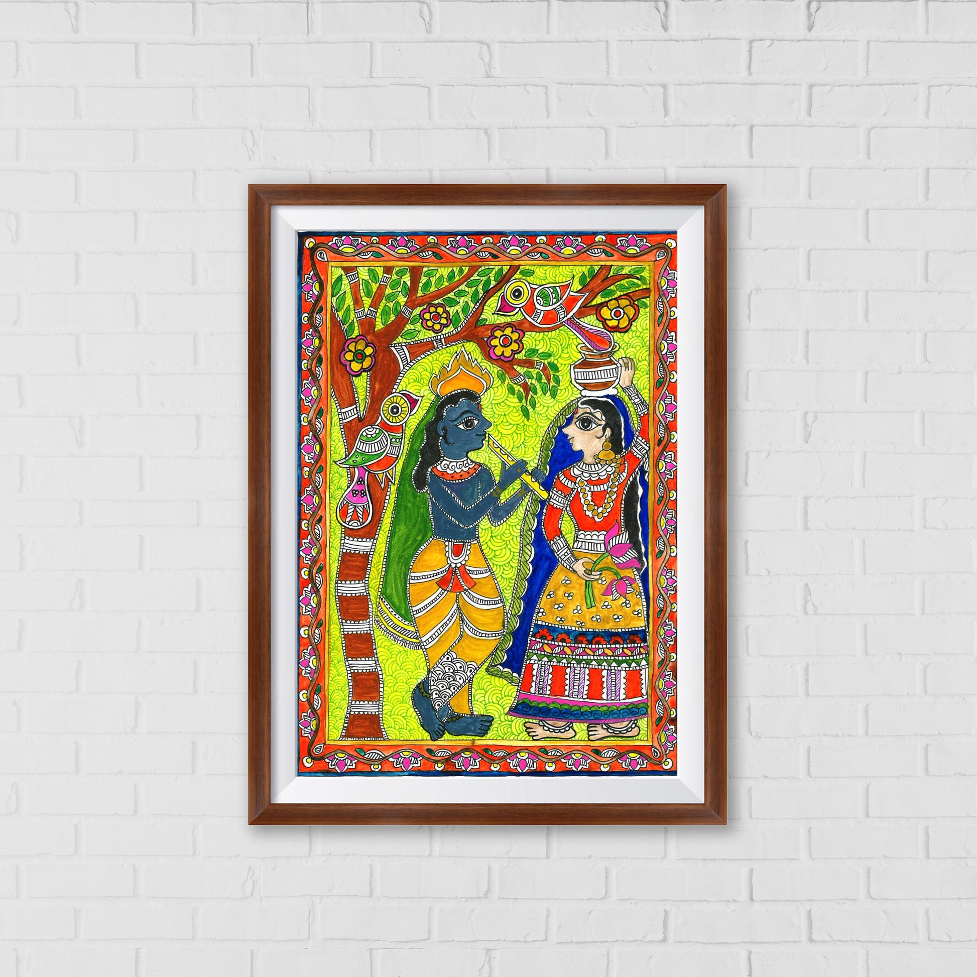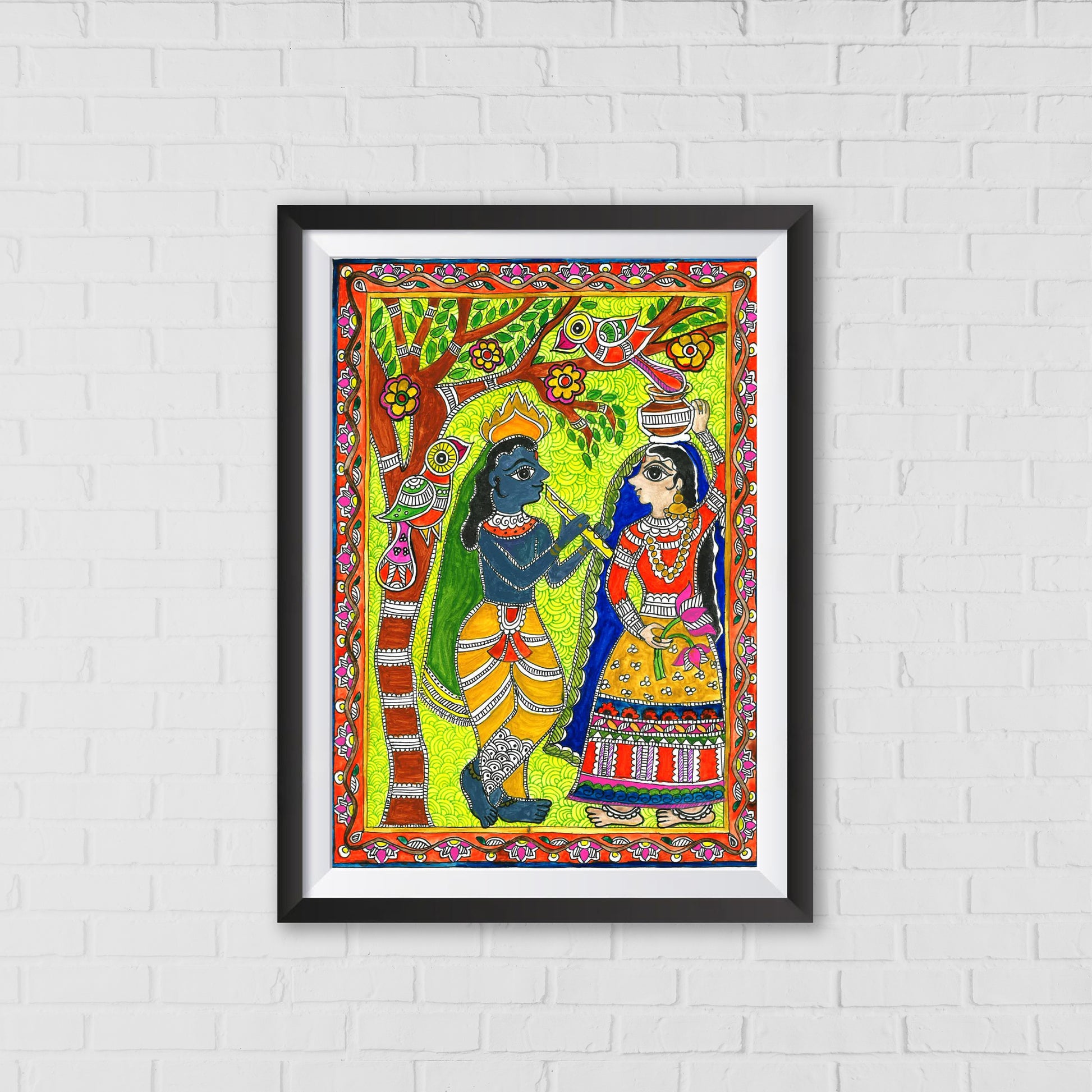 Radha Enchanted by Krishna: A Madhubani Art Story | Indian wall art Decor