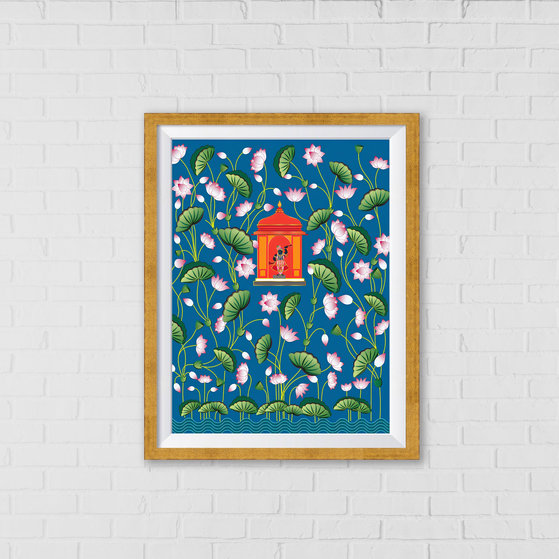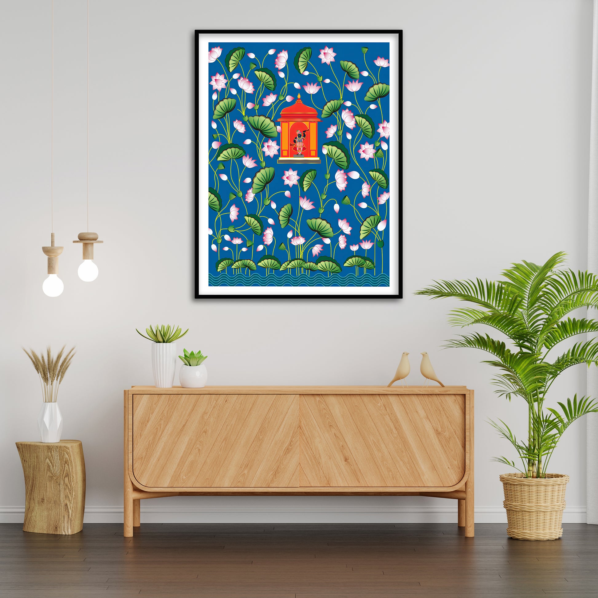 Shrinathji Lost in the Lotus Blooms Pichwai Art | Indian Wall Art Decor